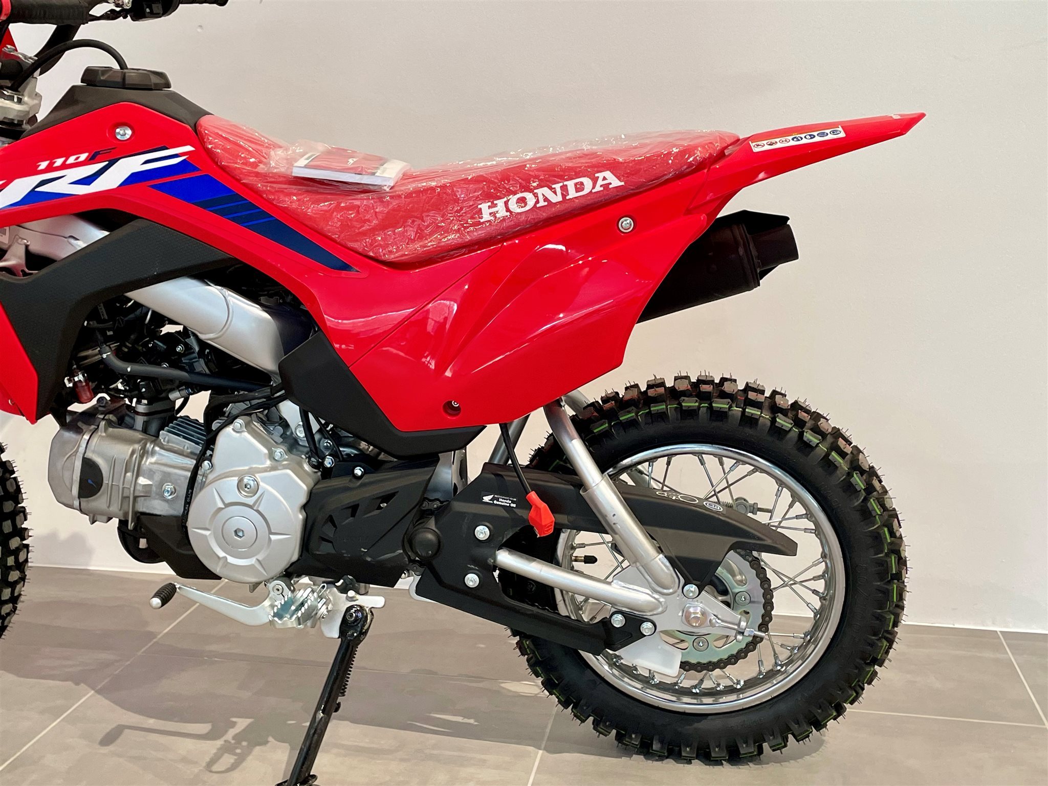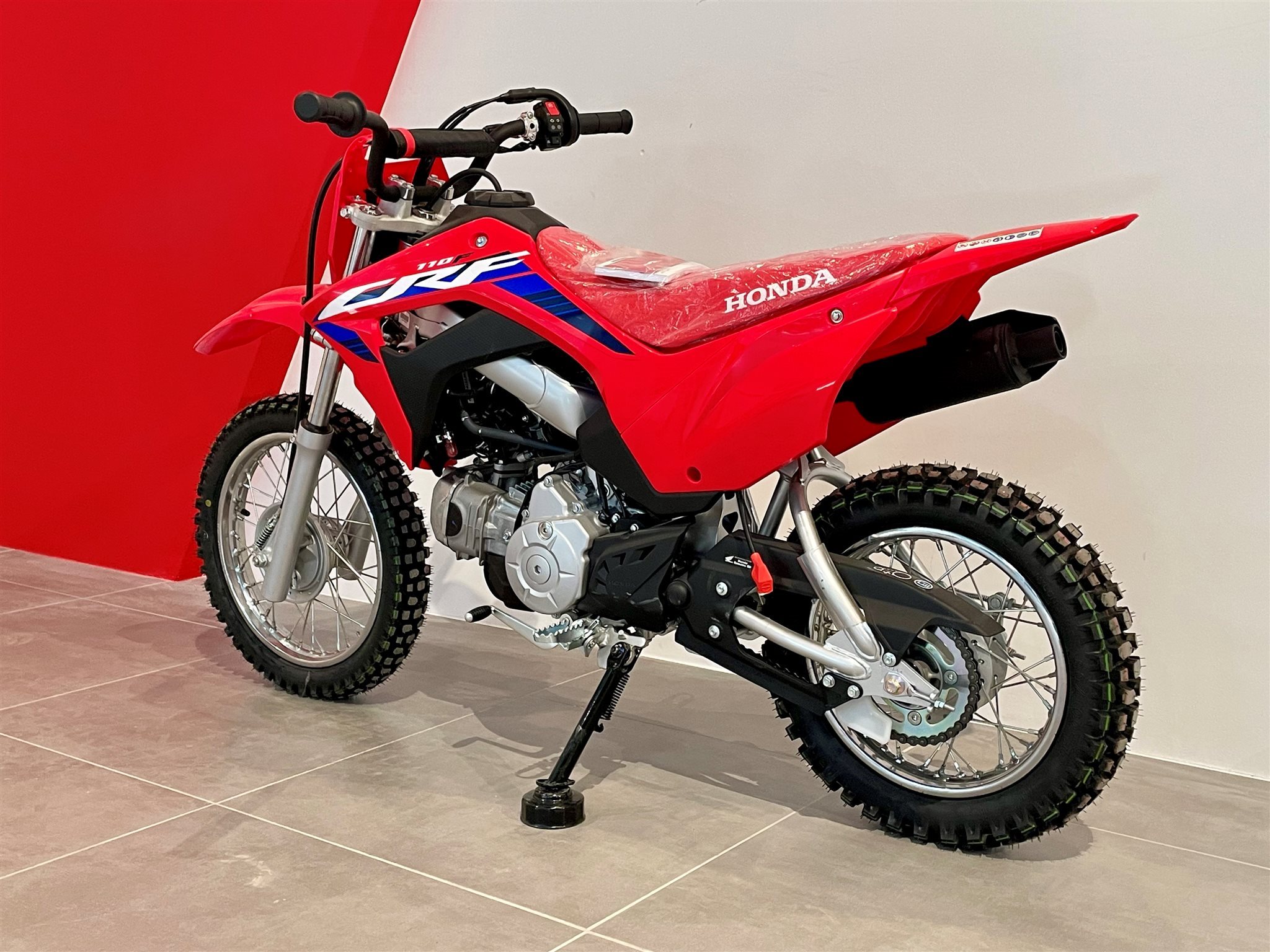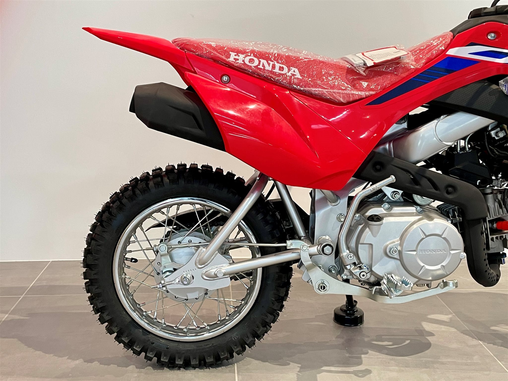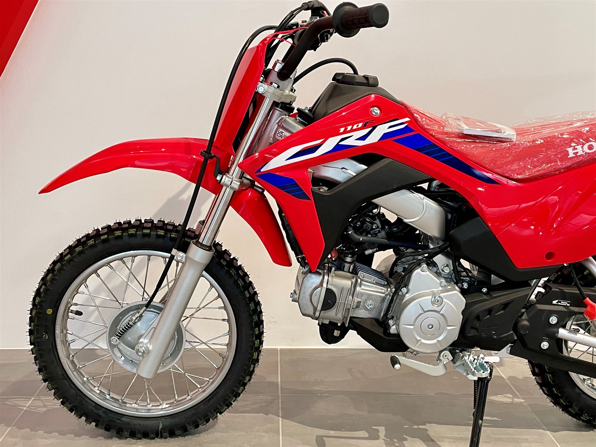 Bei der CRF110F geht es um das Fahrgefühl eines großen Motorrads und vor allem um viel Spaß. Sie richtet sich an die Altersgruppe von 8 bis 11 Jahren, besitzt ein robustes Chassis, einen elektrischen Anlasser und einen zuverlässigen Viertaktmotor. Sie ist das ideale Sprungbrett zu den wettbewerbsorientierteren Honda MX- und Enduro-Maschinen mit 125/150 cm Hubraum.