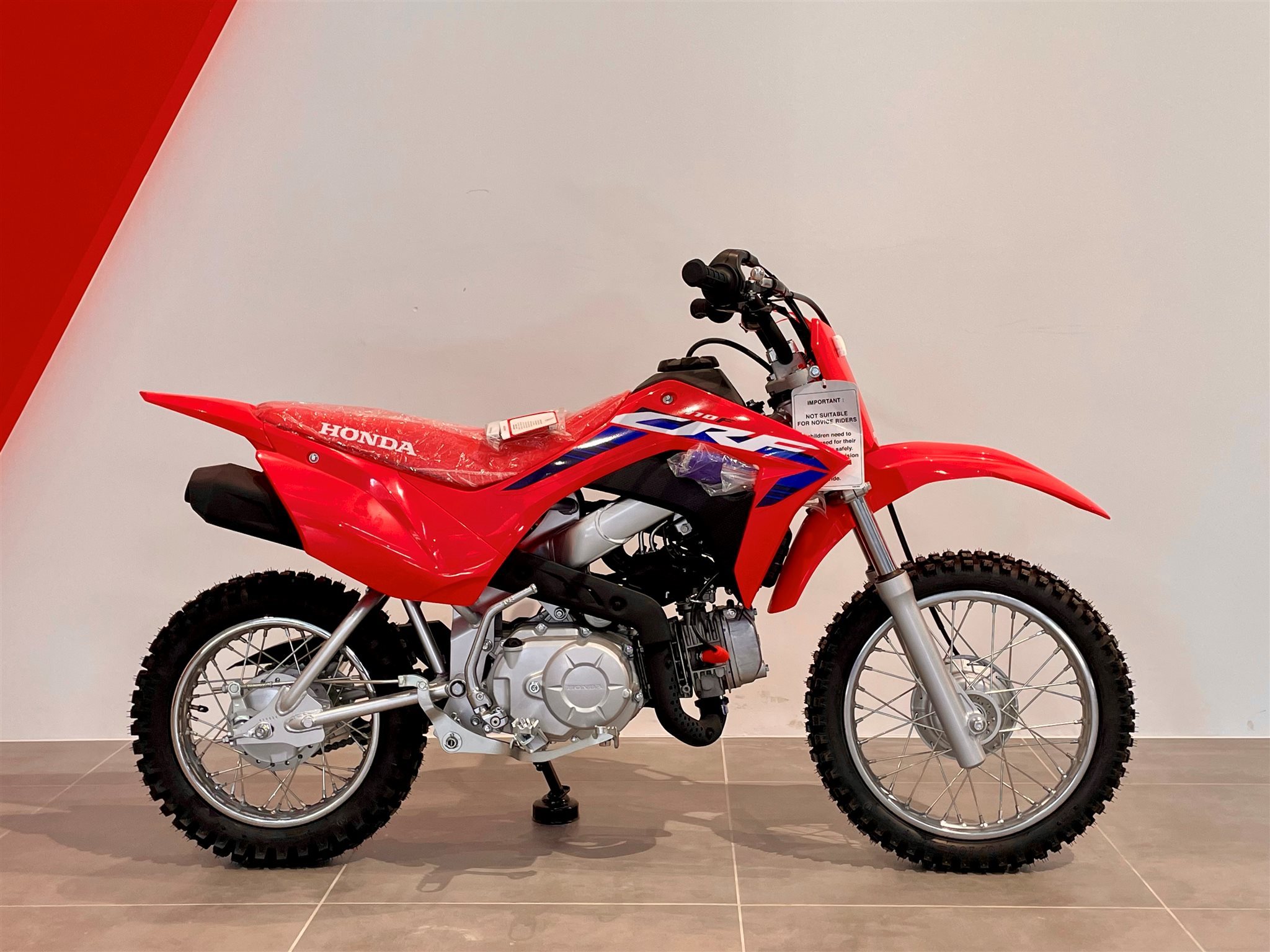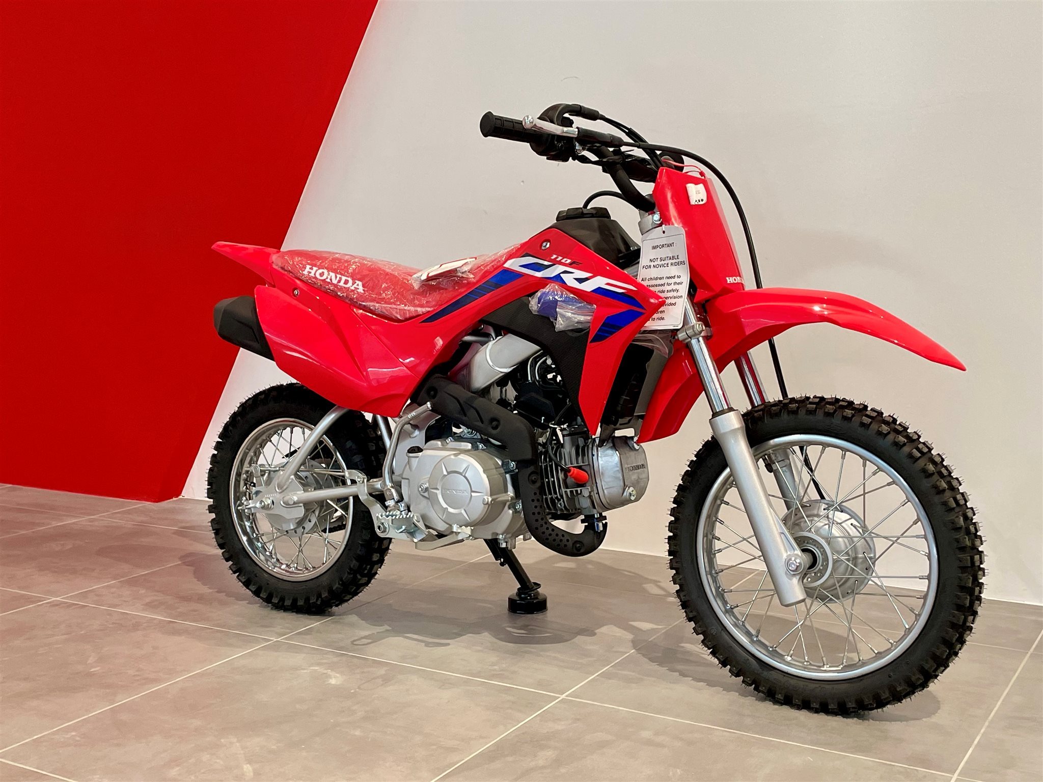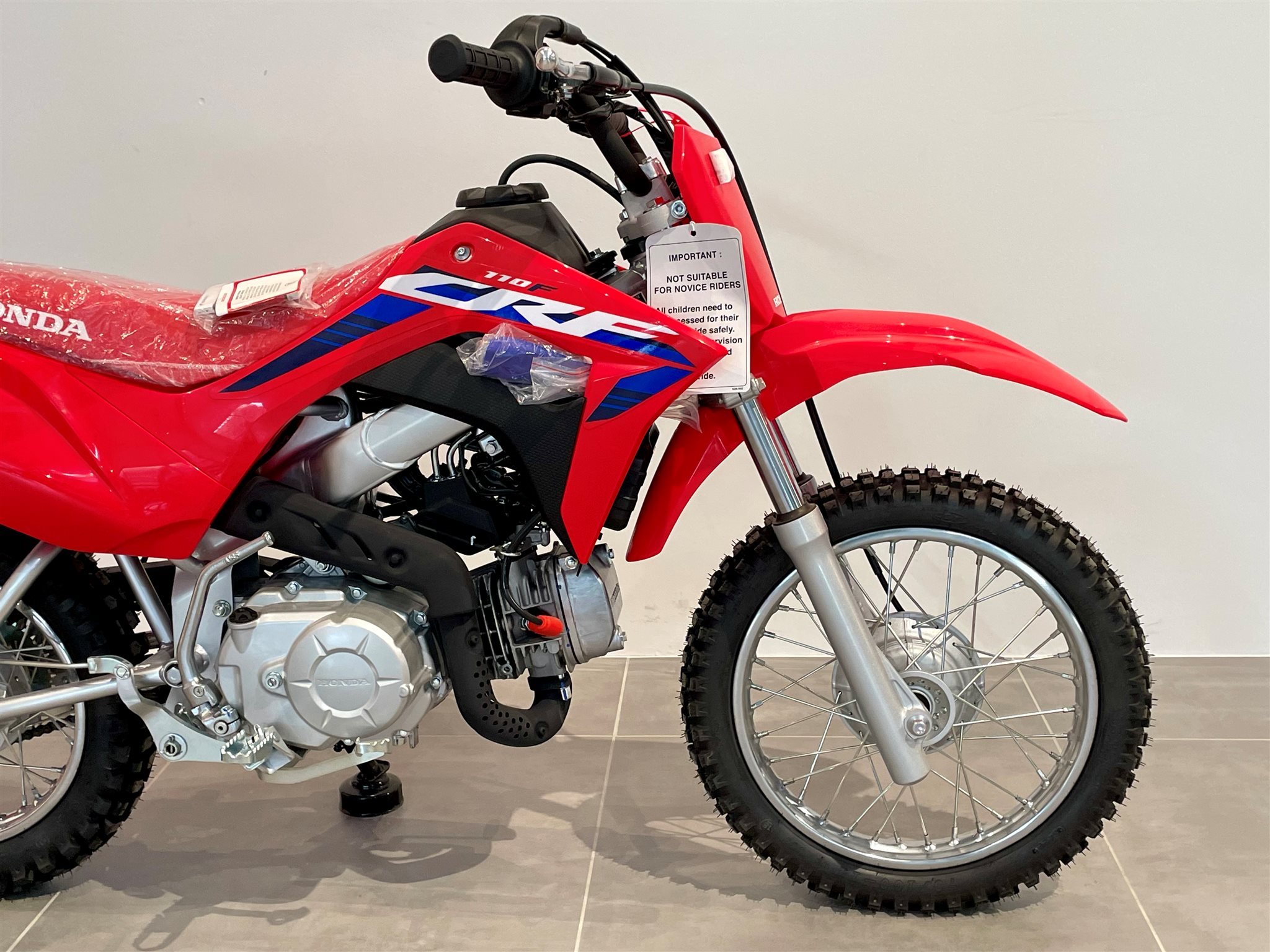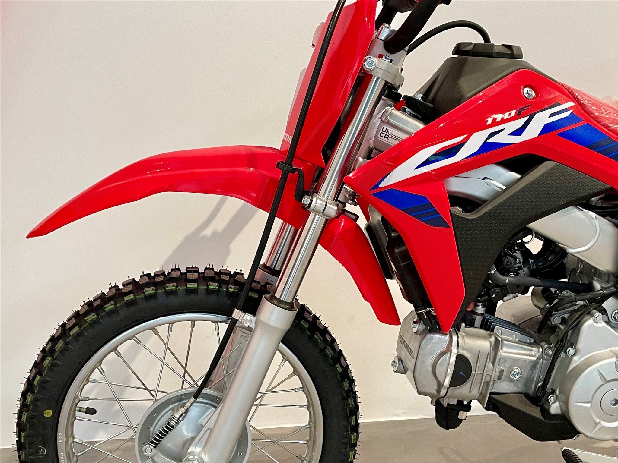 Bei der CRF110F geht es um das Fahrgefühl eines großen Motorrads und vor allem um viel Spaß. Sie richtet sich an die Altersgruppe von 8 bis 11 Jahren, besitzt ein robustes Chassis, einen elektrischen Anlasser und einen zuverlässigen Viertaktmotor. Sie ist das ideale Sprungbrett zu den wettbewerbsorientierteren Honda MX- und Enduro-Maschinen mit 125/150 cm Hubraum.